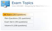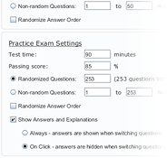 Practice exams are broken into groups of questions. You select which questions you will answer from the groups. You will see a break down of the kinds of questions, and how many exist in each category when your Testing Engine loads. Find this list under Exam Topics any time you want to segment your training into a broader scope of questions, but keeping a focus on primary exam goals.